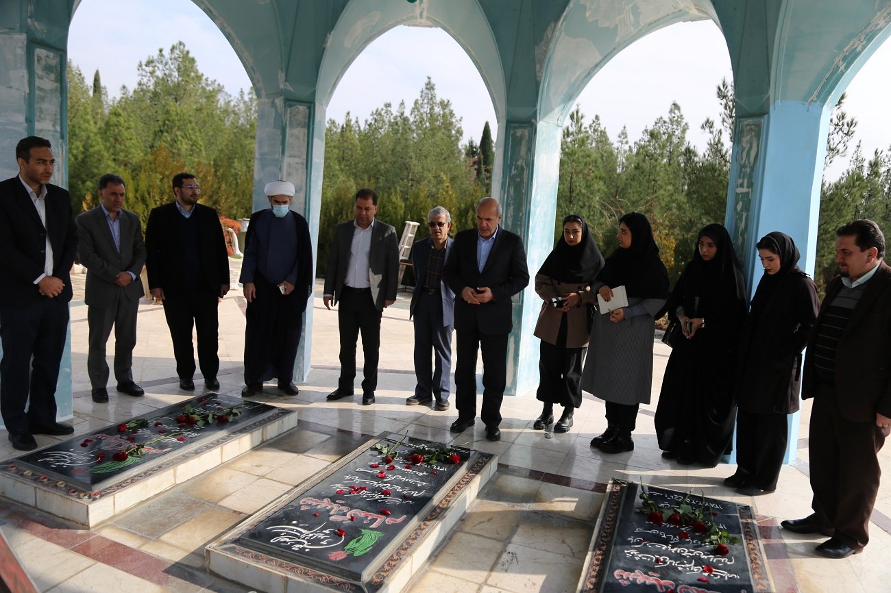 پیش از آغاز بازدیدها، دکتر حبیبا به مزار سه شهید گمنام دانشگاه لرستان رفت و با قرائت فاتحه، به مقام شامخ شهیدان ادای احترام کرد.